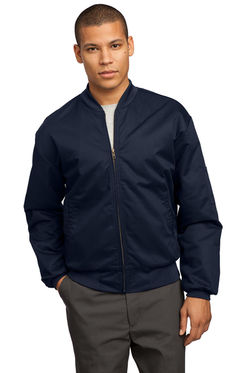 Ideal for even the toughest work our durable jacket will keep you warmwithout bulk.7.25-ounce 65/35 poly/cotton twill Permanently lined 1x1 rib knit collar cuffs and waistband Two lower inset slash pockets Utility pocket on left sleeve