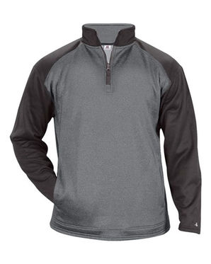 • Tonal 1/4 zip front, self fabric collar 9"locking zipper